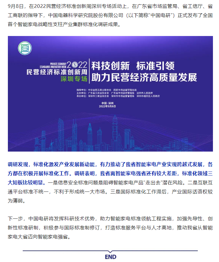 全国首个智能家电战略性支柱产业集群标准化调研成果发布