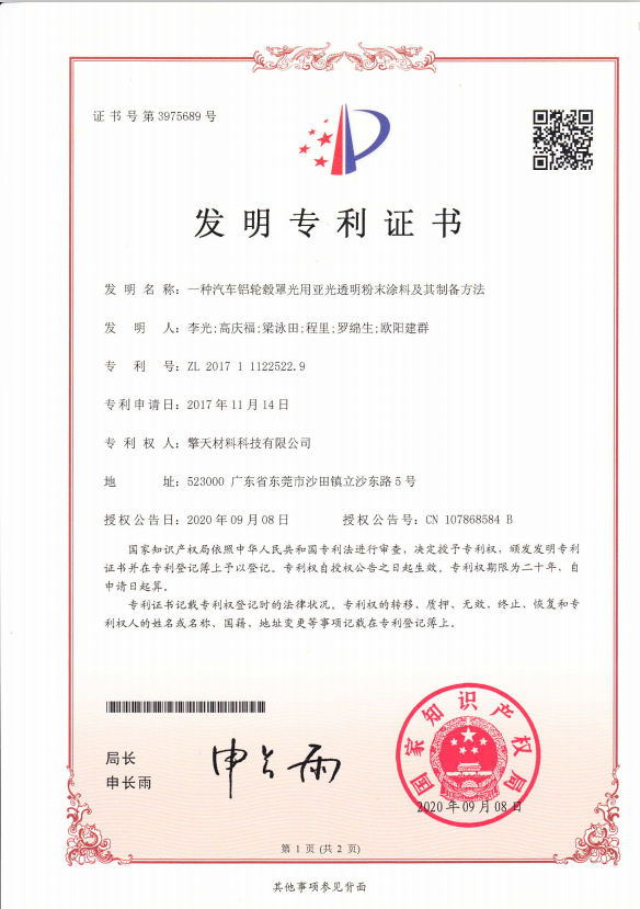 公司获得国家级高新技术企业、广东省创新型企业,广东省名牌产品、中国粉末涂料民族品牌十佳企业、广州市高精尖成长企业等荣誉称号,行业综合影响力和品牌知名度大幅提升。