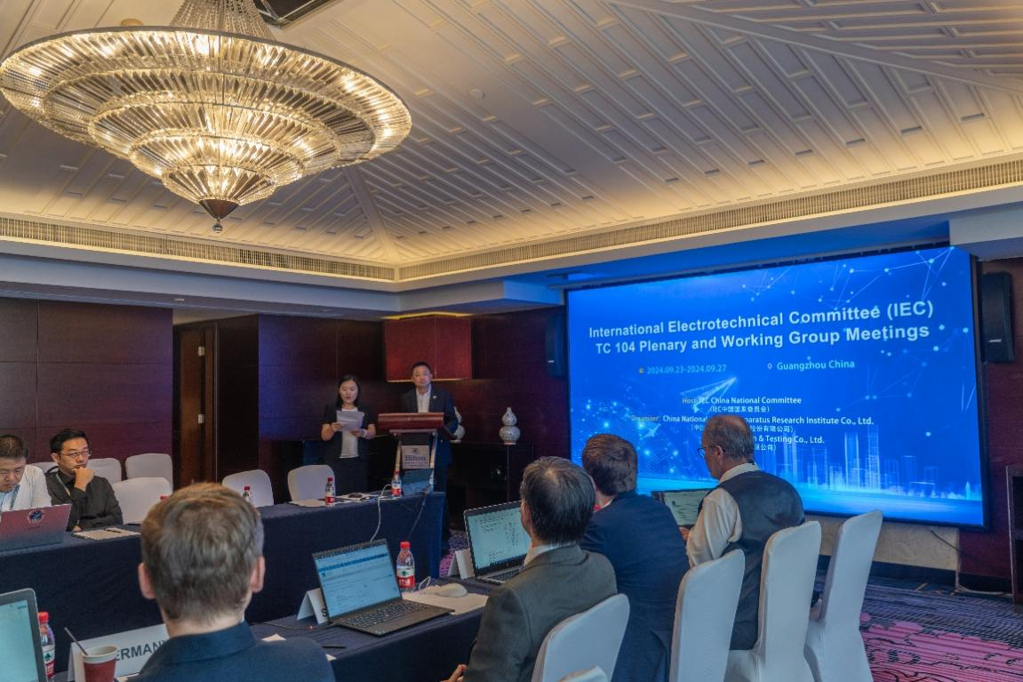 近日,2024年度IEC/TC 104全体会议及工作组会议在广州举行,中国电器科学研究院股份有限公司(简称“中国电研”)作为IEC/TC 104国内技术对口单位,联合威凯检测技术有限公司(简称“中国电研CVC威凯”)承办了此次会议。IEC亚太区域办公室技术官员Damien Lee、IEC/TC 104主席Christian Haack、秘书长Joakim Grafström,以及来自中国、德国、美国、英国、意大利、比利时、日本等P成员国的30余名专家参加了会议,中国电研董事长、全国电工电子产品环境条件与环境试验标准化技术委员会(SAC/TC8)主任委员秦汉军出席全会并致欢迎辞。
